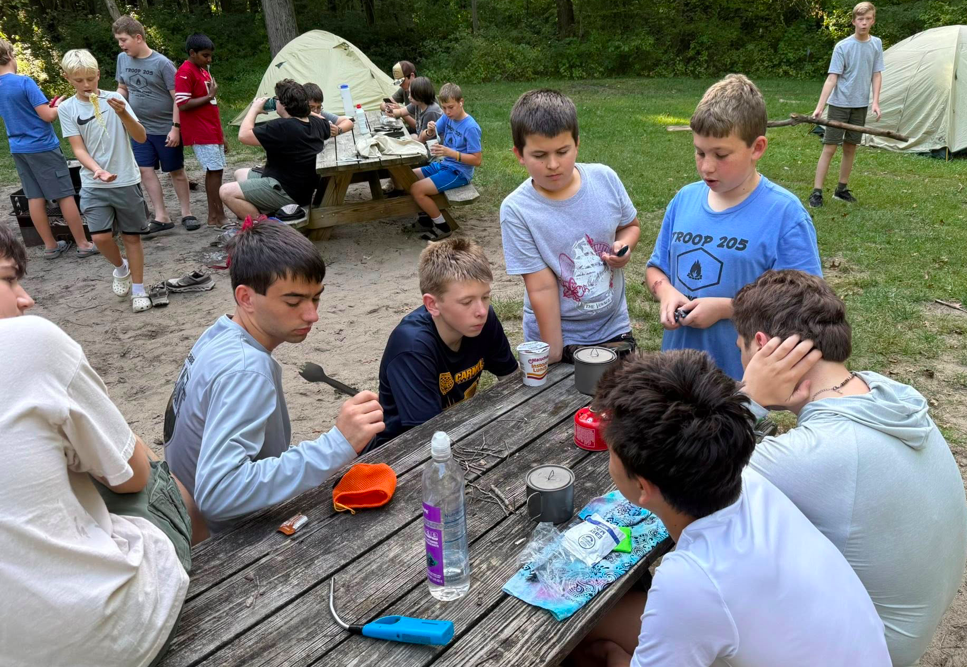 In May 2025, Troop 205 visited Camp Belzer and Fort Benjamin Harrison. We had a group of cyclers and a Philmont training hike. Gaga Ball, creek stomping, and some kickball to end the nights. We also had a service project to help rebuild a trail before summer camp.