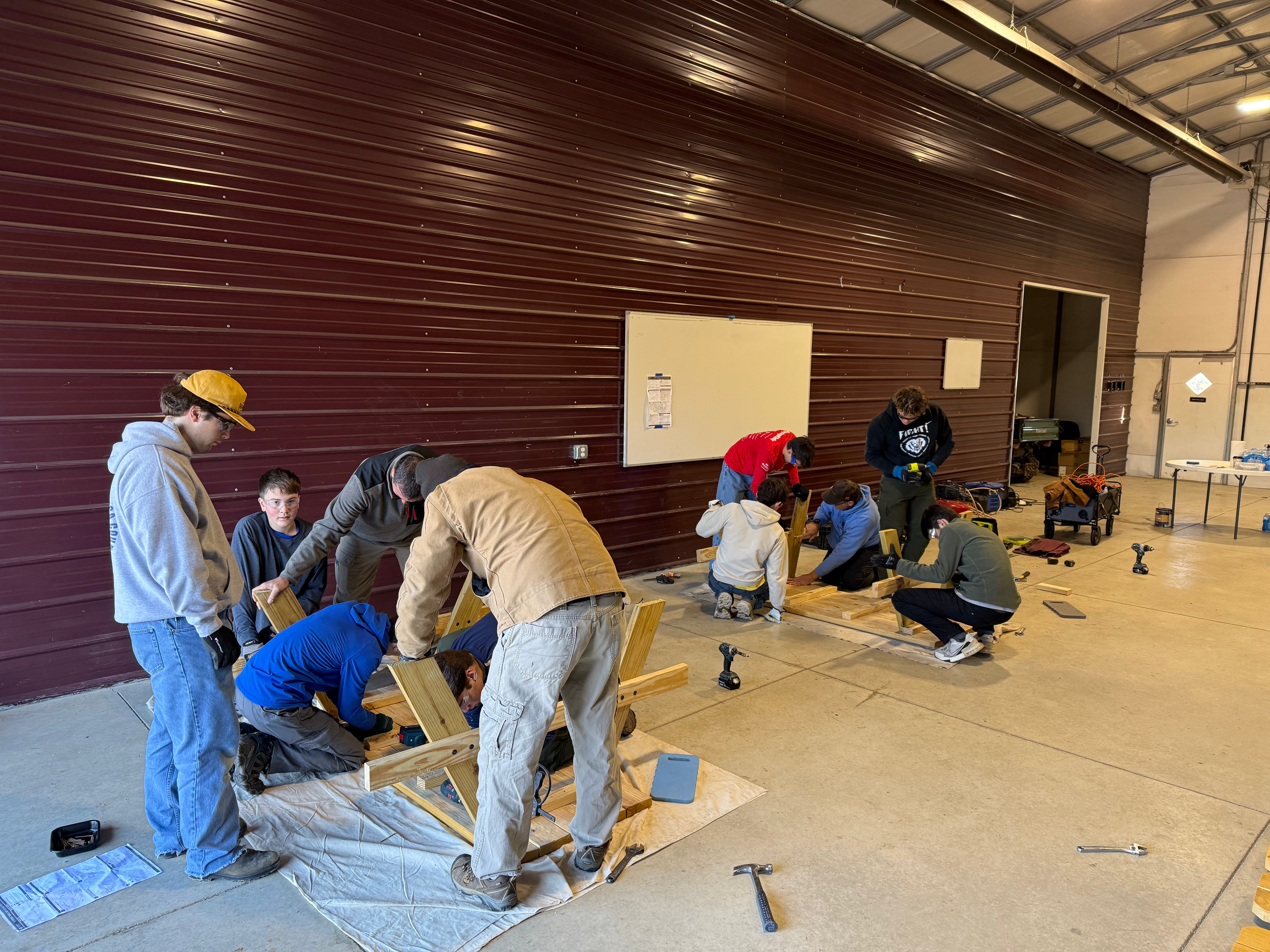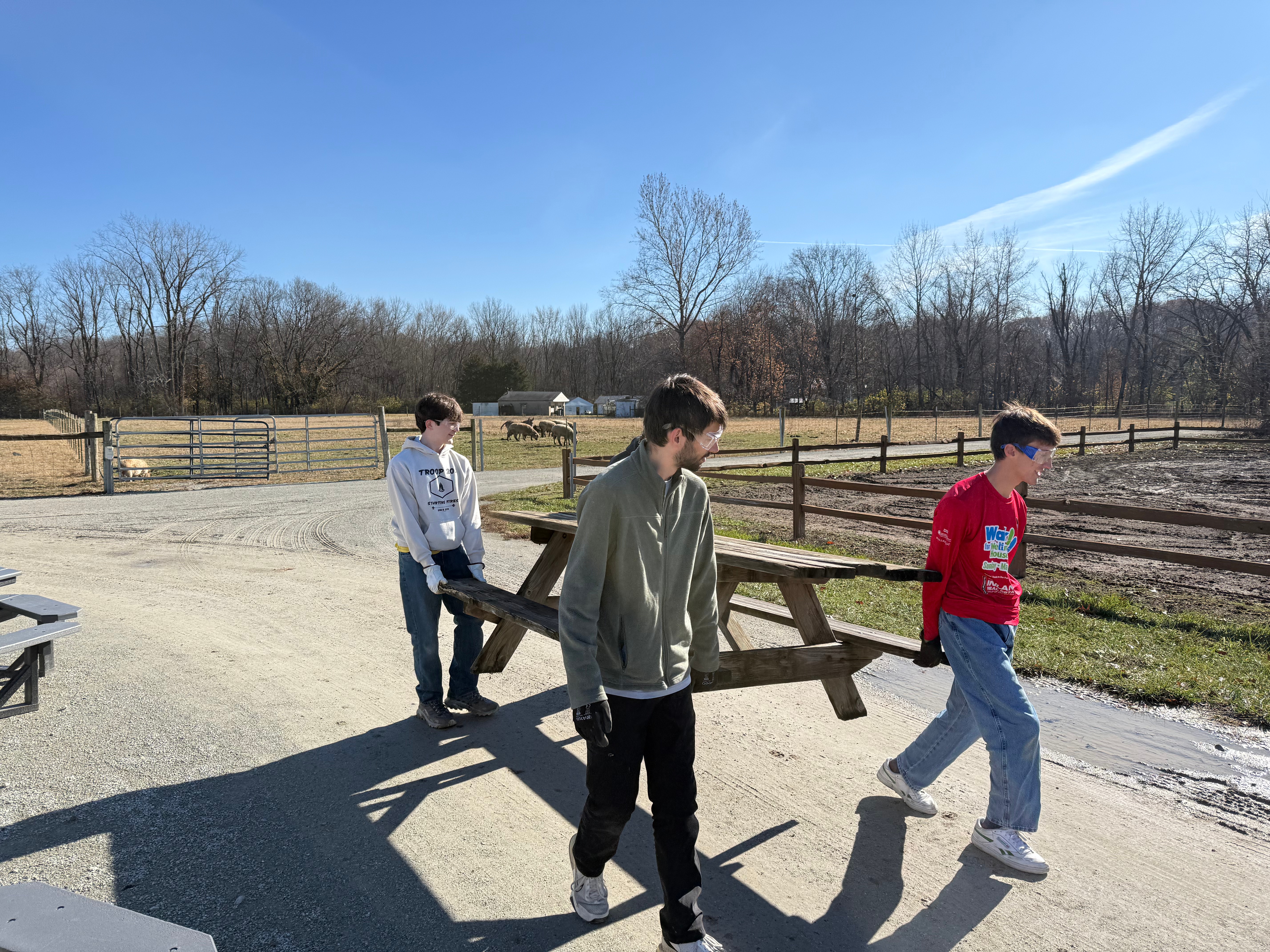 In late November, a group of Troop 205 Scouts came together to help Max complete his Eagle Scout Project at the Fishers AgriPark. During the day, the team built 4 new picnic tables for visitors and class visits. They also recycled boards from older tables that needed to be taken out of service. Great job Scouts.
