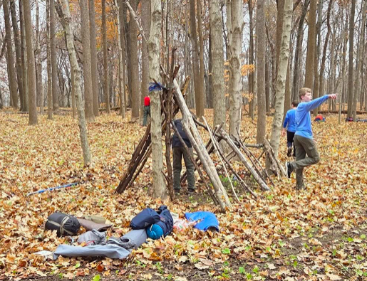Troop 205 held our annual wilderness survival outing in November near Lafayette, IN. We built shelters, cleared some trails, and worked in teams to beat the cold.